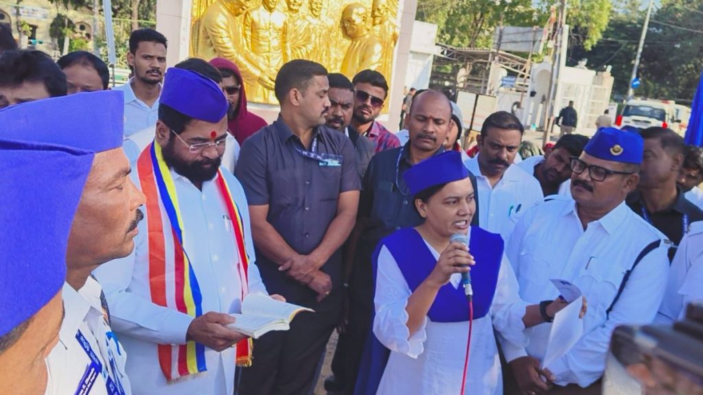 या प्रसंगी एसएसडी संपादित भारतीय संविधानाची प्रत उपमुख्यमंत्री एकनाथ शिंदे यांना देण्यात आली. newsjagar