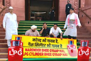 केंद्र सरकारच्या जनविरोधी धोरणाविरोधात संसद भवनाच्या मकरद्वारा बाहेर विरोधी पक्षांचे निदर्शने व धरणे