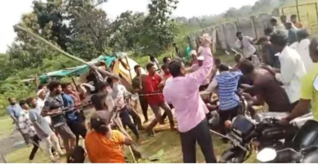 अहेरी तालुक्यातील ग्रामपंचायत नागेपल्ली गावालगत असलेल्या स्मशानभूमीच्या जागेवरून दोन गटात दबंगगिरीने हाणामारी झाली. अंतिम संस्कार करण्यासाठी गेलेल्या एका गटाला स्मशानभूमीवर अतिक्रमण करून बस्तान मांडलेल्या दुसऱ्या गटाने रोखले असता हा वाद उफाळून आला. यात काहीजण जखमी झाले असून त्यांच्या तक्रारीवरून 11 जणांवर गुन्हा दाखल करण्यात आला आहे. यातील चौघांना अटक करण्यात आली आहे. नागेपल्ली येथील स्मशानभूमीच्या जागेवर बाहेरून आलेल्या काही लोकांनी बेकायदेशीरपणे वराहपालन सुरू केले होते. रविवारला गावातील एका व्यक्तीच्या अंतिमसंस्कारसाठी काही ग्रामस्थ स्मशानभूमीत गेले असता, अतिक्रमण करणाऱ्यांनी त्यांना अडवण्याच्या प्रयत्न केला. यामुळे जोरदार वादावादामुळे ताणतणाव निर्माण झाले, काही वेळातच वादा ने हिंसक वळण घेतले आणि दोन्ही गटांत लाठ्या काठ्यांनी एकमेकांन मध्ये हाणामारी झाली. या घटनेत अनेक जण जखमी झाल्याची माहिती आहे. या घटनेची चित्रफित सार्वत्रिक झाल्याने सर्वत्र संताप व्यक्त करण्यात येत आहे. ग्रामस्थांच्या म्हणण्यानुसार सदर जागा अनेक वर्षांपासून स्मशानभूमी म्हणून वापरली जाते. यापूर्वी ग्रामपंचायत नागेपल्ली च्या मदतीने दोन वेळा अतिक्रमण हटवण्यात आले होते. परंतु ग्रामपंचायत प्रशासनाच्या दुर्लक्षपणामुळे पुन्हा बेकायदेशीरपणे वराहपालन सुरू करण्यात आले.