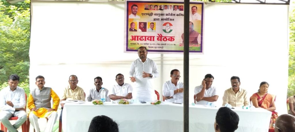 एटापल्ली – एटापल्ली तालुका काँग्रेस कमिटीच्या वतीने आयोजित तालुकानिहाय आढावा बैठक गडचिरोली जिल्हा काँग्रेस कमिटीचे जिल्हाध्यक्ष महेंद्र भाऊ ब्राह्मणवाडे, अहेरी विधानसभा निरीक्षक संतोषजी रावत आणि काँग्रेस महाराष्ट्र प्रदेश महासचिव तथा माजी जि. पं. अध्यक्ष अजय भाऊ कंकडलावार यांच्या प्रमुख उपस्थितीत पार पडली.