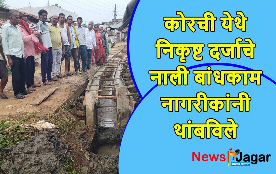 येथील वार्ड क्रमांक 14 , दर्रोटोली येथे नालीचे बांधकाम सुरू आहे. या नालीचे बांधकाम निकृष्ट दर्जाचे होत आहे. नालीच्या तळाशी बोल्डर ( 80/40 mm ) चा थर दिला नाही. 20 mm च्या गिट्टीचा फक्त 2 इंच थर देऊन तळ तयार करण्यात आले आहे. मजूरांना विचारले असता, सिमेंट, रेती गीठ्ठी सरासरी 1:4:4 असा प्रमाण वापरल्या जात असल्याचे सांगितले. छत्तीसगढ राज्यातून आणलेली निम्न दर्जाची गिट्टी वापरल्या जात आहे.रेतीमध्ये मातीचे प्रमाण जास्त आहे.त्यामुळे हे बांधकाम निकृष्ट दर्जाचे होत आहे. korchi
