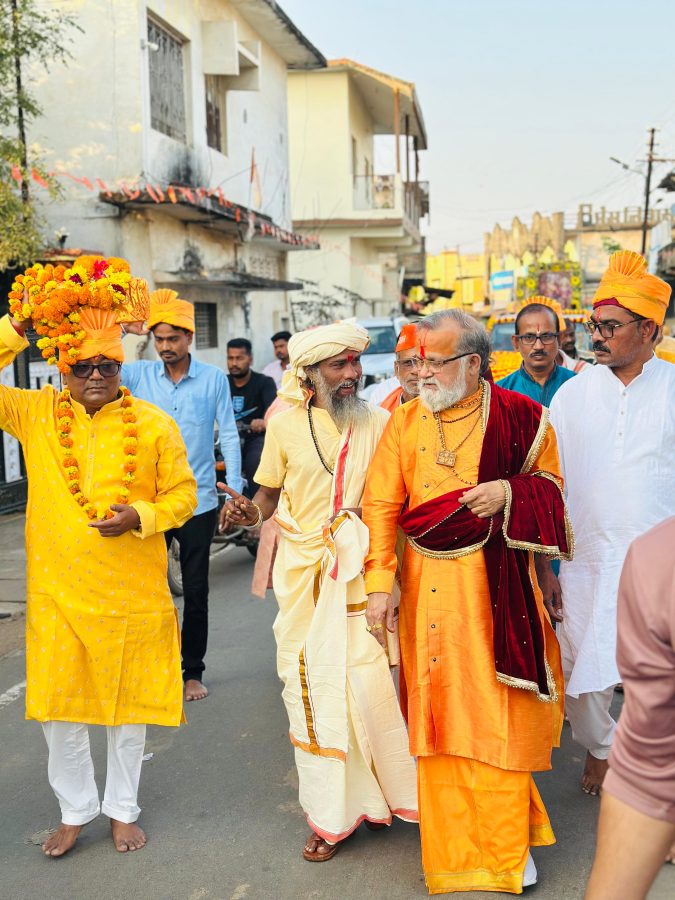 चामोर्शी (प्रतिनिधी) : माजी आमदार डॉ. देवराव होळी यांच्या वाढदिवसानिमित्त दि. 4 डिसेंबर ते 10 डिसेंबर दरम्यान आयोजित श्रीमद भागवत ज्ञान यज्ञ सप्ताहाचा शुभारंभ भव्य कलश यात्रेने झाला. शहरातील प्रमुख मार्गांवरून निघालेल्या या यात्रेत जिल्ह्यातील हजारो भाविक भक्तांचा उत्स्फूर्त सहभाग पाहायला मिळाला.