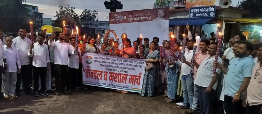 मोर्चात सहभागी नागरिकांनी “गली गली मै शोर है, मोदी सरकार चोर है, आणि वोट चोर गद्दी छोड” अशा घोषणा दिल्या. मशालींच्या धगधगत्या ज्वाला आणि कॅन्डलच्या तेजोमय प्रकाशामुळे गडचिरोलीच्या रस्त्यांवर लोकशाहीच्या रक्षणाचा संदेश ठळकपणे उमटला.