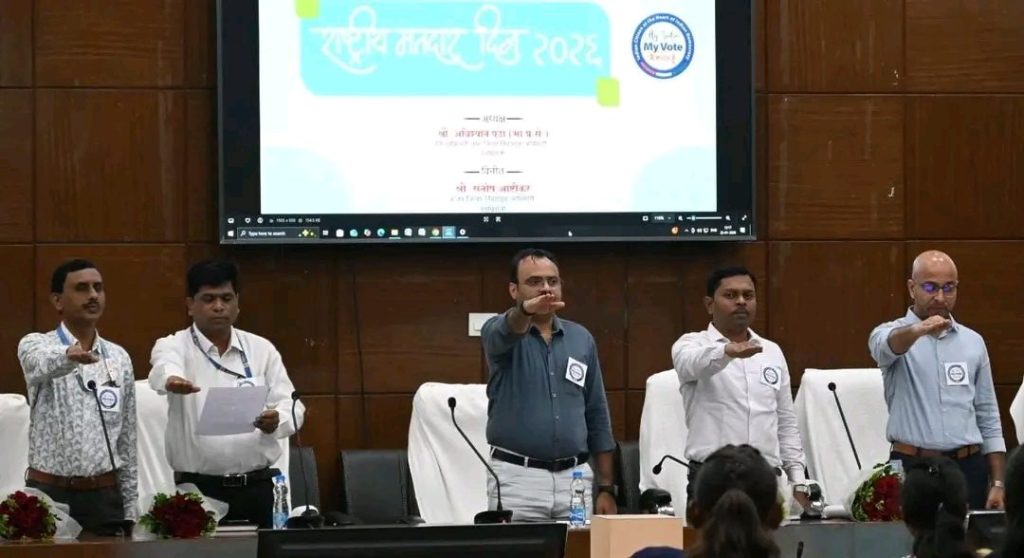 गडचिरोली : भारत निवडणूक आयोगाच्या स्थापना दिनानिमित्त २५ जानेवारी २०२६ रोजी १६ वा राष्ट्रीय मतदार दिन कार्यक्रम जिल्हा नियोजन समिती सभागृह, जिल्हाधिकारी कार्यालय, गडचिरोली येथे उत्साहात पार पडला. कार्यक्रमाच्या अध्यक्षस्थानी अपर जिल्हाधिकारी नितिन गावंडे होते. युवा मतदारांचा मतदान प्रक्रियेत सहभाग वाढावा व लोकशाही अधिक बळकट व्हावी, असे आवाहन श्री. नितिन गावंडे यांनी केले.