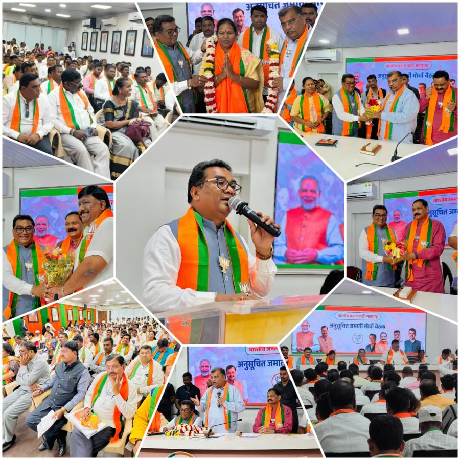 मुंबई : भारतीय जनता पार्टीच्या आदिवासी मोर्चाची राज्यस्तरीय महत्त्वपूर्ण बैठक मुंबई येथील प्रदेश कार्यालयात उत्साहात पार पडली. राज्यभरातून मोठ्या संख्येने पदाधिकारी उपस्थित राहिल्याने बैठकीला विशेष महत्त्व प्राप्त झाले. यावेळी भाजपा प्रदेशाध्यक्ष मा. रवींद्र चव्हाण यांनी नवनियुक्त आदिवासी मोर्चाचे प्रदेशाध्यक्ष डॉ. देवराव होळी यांचे कौतुक करत त्यांच्या नेतृत्वाबद्दल विश्वास व्यक्त केला.