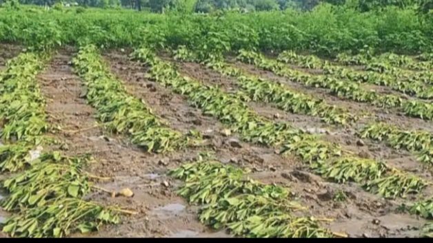 बुलढाणा – जिल्ह्यातील चार तालुक्यात सोमवारी झालेल्या अतिवृष्टीचा तब्बल ३३९ गावांतील ७८,५७४ हेक्टरवरील खरीप पिकांना जबर तडाखा बसला. एक लाखावर शेतकऱ्यांना याचा फटका बसला असून आधीच चोहोबाजूनी संकटात असलेले शेतकरी कोलमडून गेले आहे.सर्वाधिक नुकसान ढगफुटीसदृश पावसाने थैमान घातलेल्या चिखली तालुक्यात झाले. मेहकर तालुक्यातील १६१ गावांतील १२,८५० हेक्टरवरील पिकांची अतोनात नासाडी झाली. मोताळा तालुक्यातील चार गावातील ३८.५० हेक्टर, संग्रामपूर तालुक्यातील २४ गावातील २४७२ हे.वरील पिकांचे नुकसान झाले. या चार तालुक्यांत सोयाबीन, मका, तूर, उडीद, मूग, कपाशी या खरीप पिकांसह फळबागा, भाजीपाल्याचे नुकसान झाले.