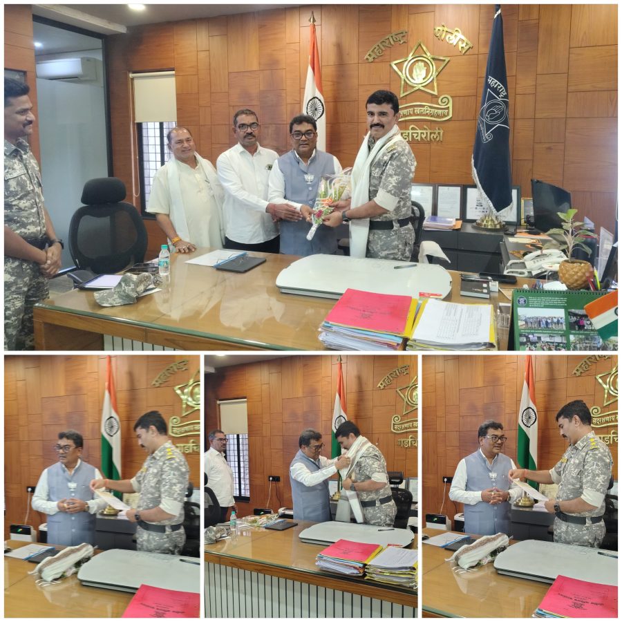 गडचिरोली जिल्ह्याचे पोलीस अधीक्षक निलोत्पल यांची कोल्हापूर येथे बदली झाल्याच्या पार्श्वभूमीवर माजी आमदार तथा भाजपा आदिवासी मोर्चाचे प्रदेशाध्यक्ष डॉ. देवराव होळी यांच्या हस्ते शाल व पुष्पगुच्छ देऊन त्यांचा सत्कार करण्यात आला. यावेळी त्यांच्या पुढील प्रशासकीय वाटचालीस मनःपूर्वक शुभेच्छा देण्यात आल्या.