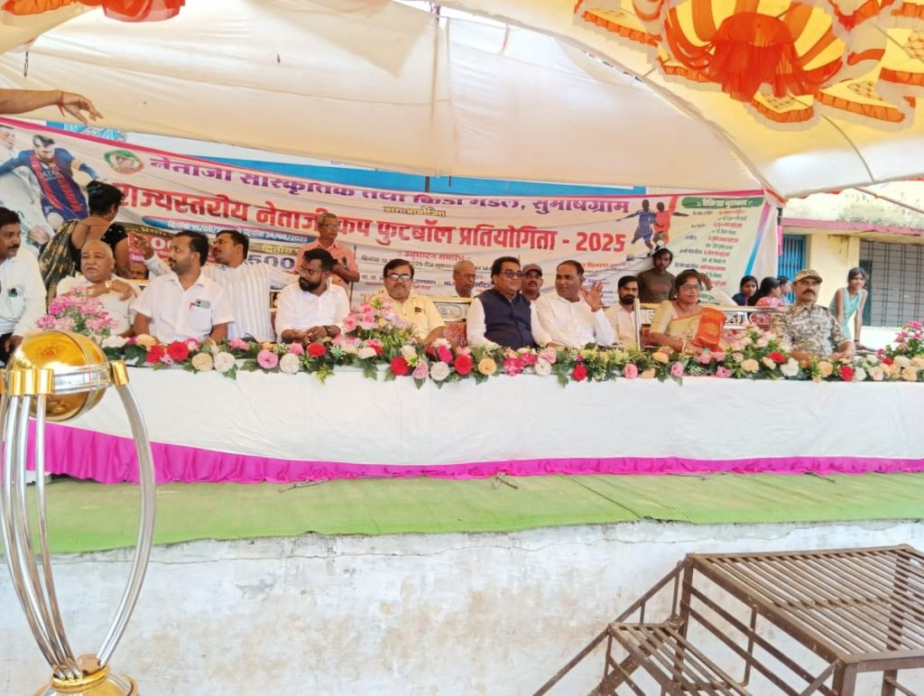 चामोर्शी – 15 ऑगस्ट भारतीय स्वातंत्र्य दिनानिमित्त चामोर्शी तालुक्यातील सुभाषग्राम येथे नेताजी सुभाषचंद्र बोस सांस्कृतिक व क्रीडा मंडळाच्या वतीने राज्यस्तरीय फुटबाल स्पर्धेचे आयोजन करण्यात आले होते. दिनांक 24 ऑगस्ट रोजी स्पर्धेचा शेवटचा अंतिम सामना पार पडला या सामन्याला भाजप प्रदेश उपाध्यक्ष तथा माजी आमदार डॉ देवराव होळी यांनी उपस्थीती दर्शविली व त्यांच्या हस्ते बक्षीस वितरण सोहळा पार पडला. विजेता संघ ग्रीन सिटी क्लब, नागपुर व उपविजेता संघ के.जी.एन. सिटी क्लब, नागपुर त्यांच्या हस्ते विजेता, उपविजेता संघाला अंतिम सामन्याचे बक्षीस वितरण करण्यात आले. यावेळी त्यांनी खेळाडूंची भेट घेत स्पर्धेत उस्फुर्त सहभाग घेतल्याबद्दल त्यांचे आभार मानत सहभागी संघातील खेळाळू यांना चांगली कामगिरी केल्याबद्दल त्यांना राज्यस्तरावर सहभागी होऊन चांगले खेळ खेळावे तसेच त्यांना शुभेच्छा देऊन खेळाडू चे मनोबल उंचावले. व फूटबॉल स्पर्धेच्या आयोजकांनी उत्कृष्ट रित्या नियोजन केल्याबद्दल मंडळातील सदस्यांचे कौतुक केले.