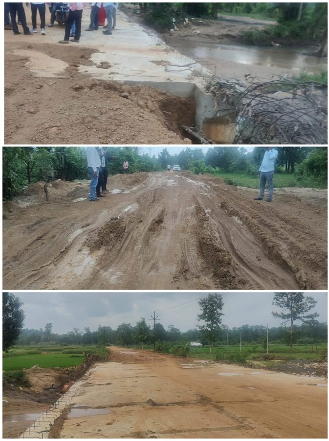 * गिट्टी न टाकता माती-मुरूमाने केलेले काम.
