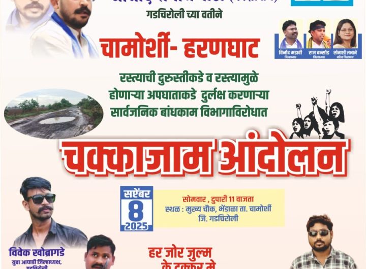 सोनू वाळके,गडचिरोली जिल्हाप्रतिनिधी. प्रेस नोट चामोर्शी :- गडचिरोली जिल्ह्यातील अत्यंत महत्त्वाचा समजला जाणारा *चामोर्शी – हरणघाट – मूल* मार्ग सध्या पूर्णपणे जीर्णावस्थेत असून मोठमोठे खड्डे पडल्याने नागरिकांना प्रचंड...