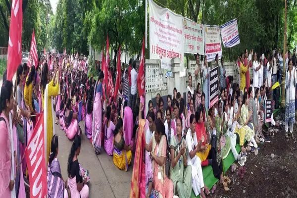 वर्धा – राष्ट्रीय आरोग्य अभियान कंत्राटी अधिकारी कर्मचारी संघटना एकीकरण समितीच्या वतीने सुरू केलेल्या संपाच्या सोळाव्या दिवशी आज बुधवार ३ रोजी थाळीनाद तर अंगणवाडी कर्मचार्यांनी भरपावसात जिल्हा परिषदेवर...